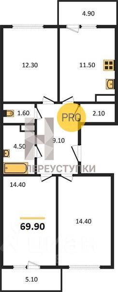 Продается 3 комн. квартира в ЖК "4YOU". Квартира с предчистовой отделкой в пешей доступности от метро Звездная.
